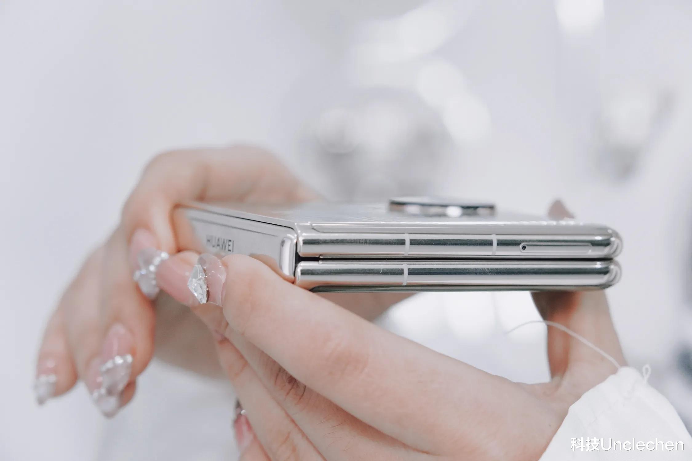 二、送给女友的轻奢手机:华为P50 Pocket除了针对上班族的华硕无畏Pro14系列,我认为华为P50 Pocket就很适合女性用户使用。因为华为P50 Pocket的颜值真的蛮高的,外观看起来就像是一小块粉饼盒,并且该折叠屏对折后两块屏幕严丝合缝小巧精致,应该很戳各位女生的审美。