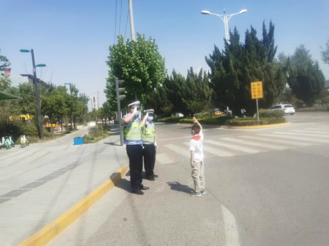 红领巾小朋友敬礼民警回礼的画面非常温馨,让人感动。