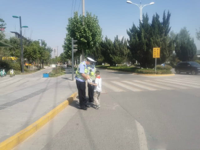 孩子的祝福让大太阳下工作的民警又惊喜又感动,这个真是劳动节里最美好的礼物呀!