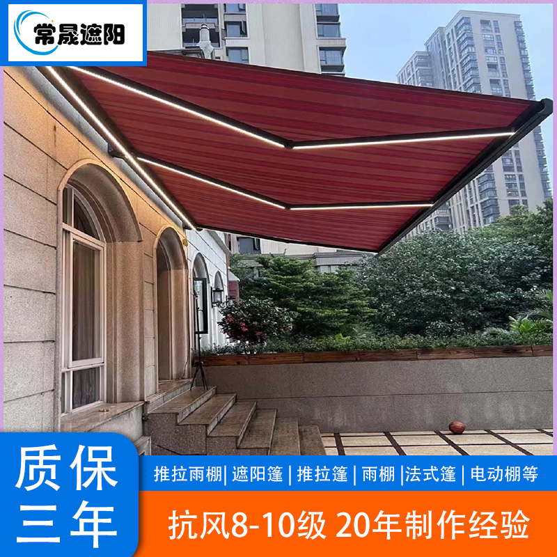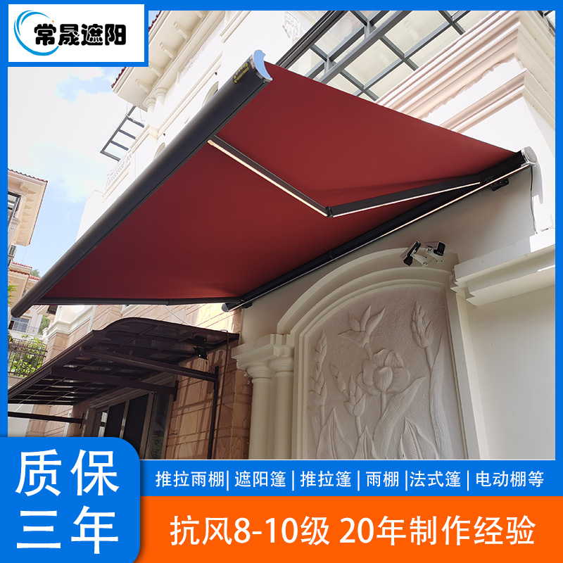 常州地区使用的电动伸缩遮阳篷(雨棚)其材质选择非常关键,直接影响到产品的耐久性、美观度、功能性和价格。常州气候湿润,夏季有强日照和台风,冬季湿冷,因此材质需兼顾防水、防晒、抗风、防霉等特性。