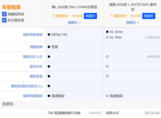 新年有新愿、新春开新车,不少朋友都把“提一辆家用好车”列入了愿望清单。而在10-15万级家轿这个主流预算区间,依然是那个老生常谈的问题,是混动,还是燃油?这其中,比亚迪秦L凭借低油耗、长续航和高配置的全能表现圈粉无数,速腾L则是燃油家轿市场的“常青树”,同样是热门车型,谁才是优选?