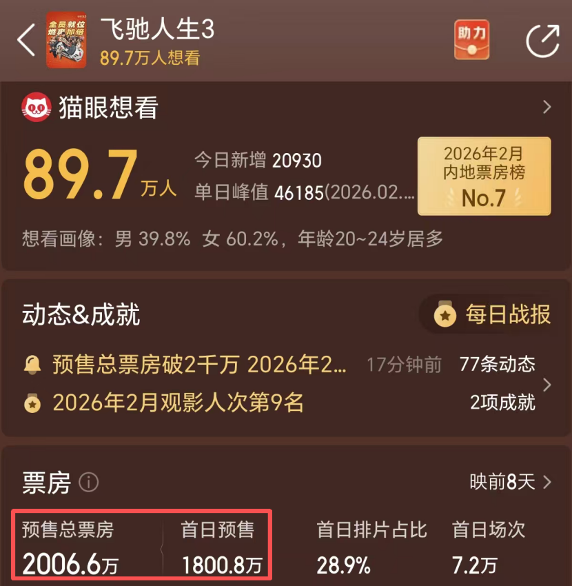 而从中也不难猜出后续的票房走势了,最有望问鼎今年春节档冠军的,当属沈腾的《飞驰人生3》。在2024年,《飞驰人生2》上映时,票房惜败贾玲的《热辣滚烫》,希望这次能如愿以偿,更上一层楼!