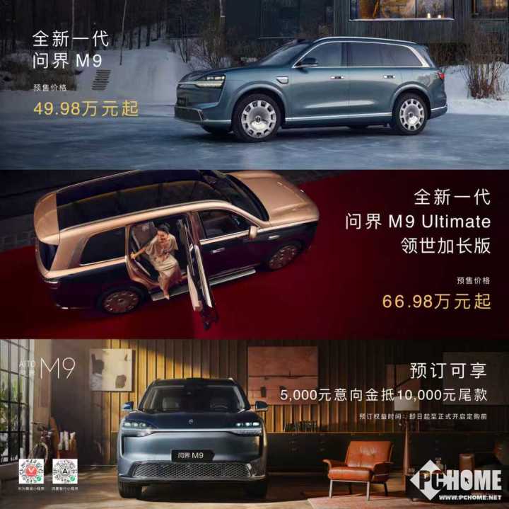 PChome 4月22日消息,鸿蒙智行春季发布会今日举行,全新一代问界M9正式开启预售。预售价全新一代问界49.98万元起;全新一代问界M9 Ultimate领世加长版66.98万元起,预订可享5000元意向金抵10000元尾款,4月24日也将亮相北京车展。