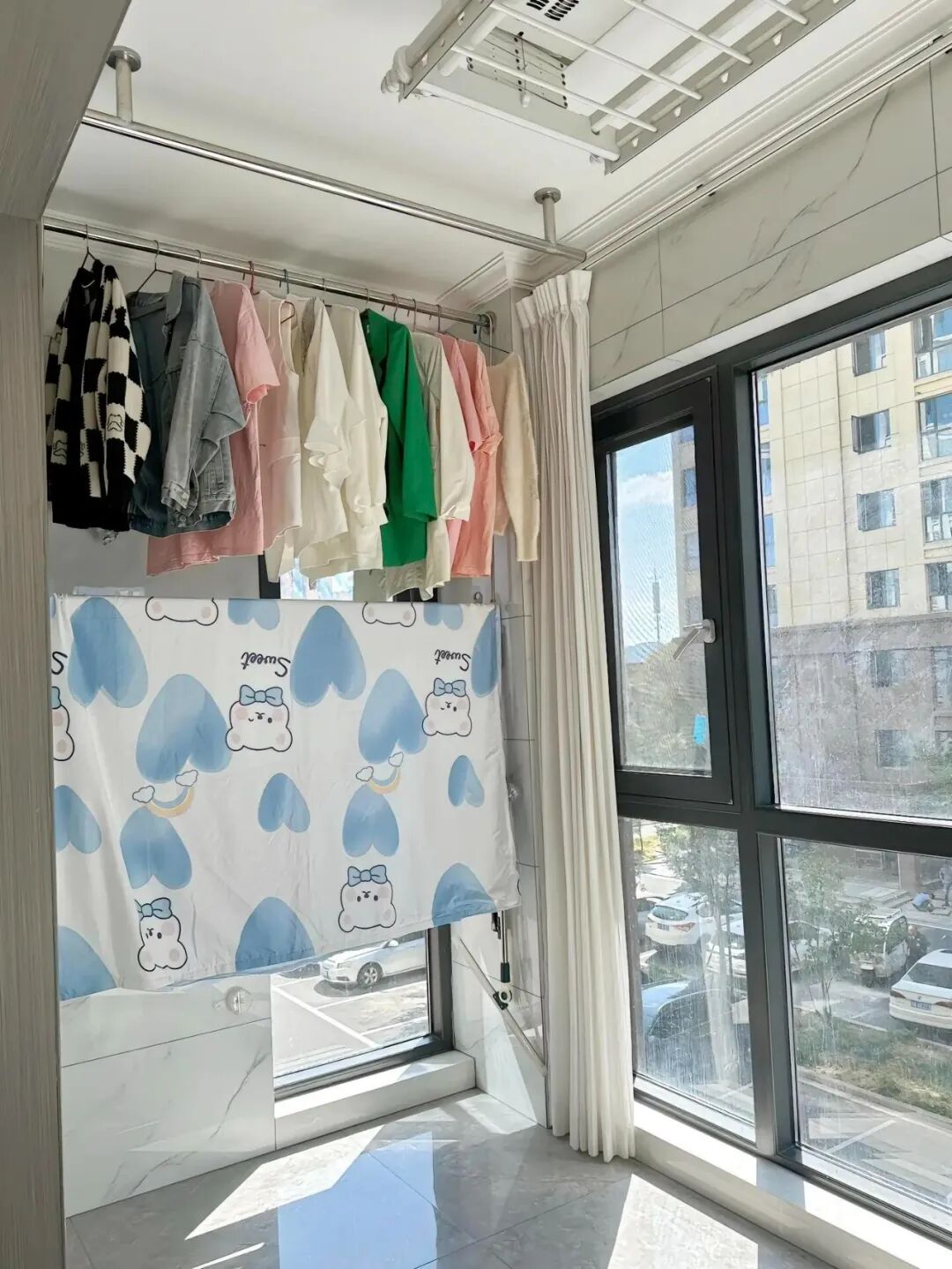 装修时要是想把阳台解放出来,不晾晒衣物,除了上面说的侧装晾衣架与烘干机,还能有哪些实用的晾衣思路呢?
