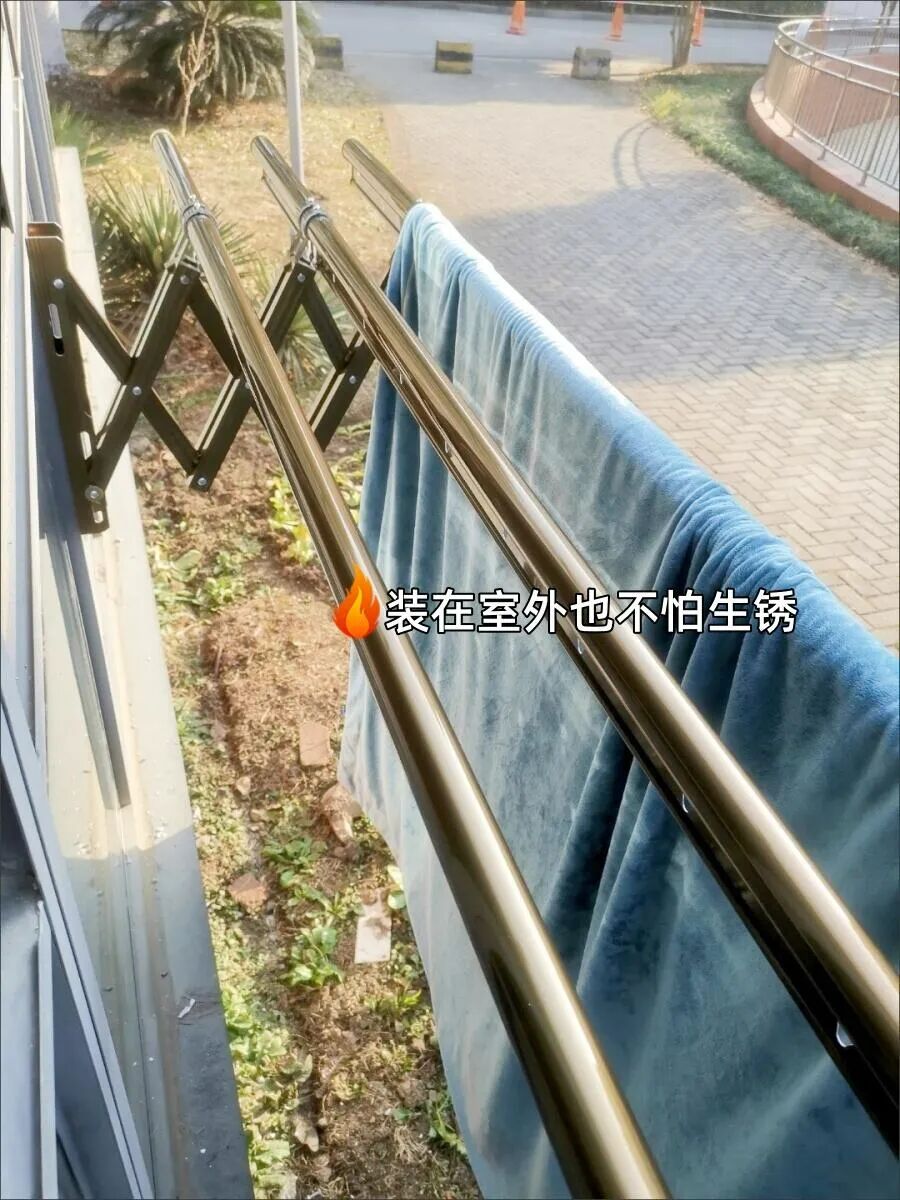 在阳台窗户外区安装室外伸缩晾衣架,秒变阳光晾晒区,3.5米长度的三杆,也只要四五百块钱。