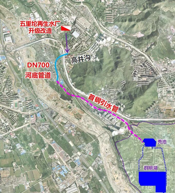 此前,首钢园区秀池、群明湖景观水源单一,调节能力较差。同时,由于再生水管网尚未完善,五里坨再生水厂优质再生水未得到最大程度的有效利用。为推进美丽河湖保护与建设,加快完善石景山区水网,优化首钢园区水资源利用,11月5日,首钢水系再生水引入工程正式开工建设。
