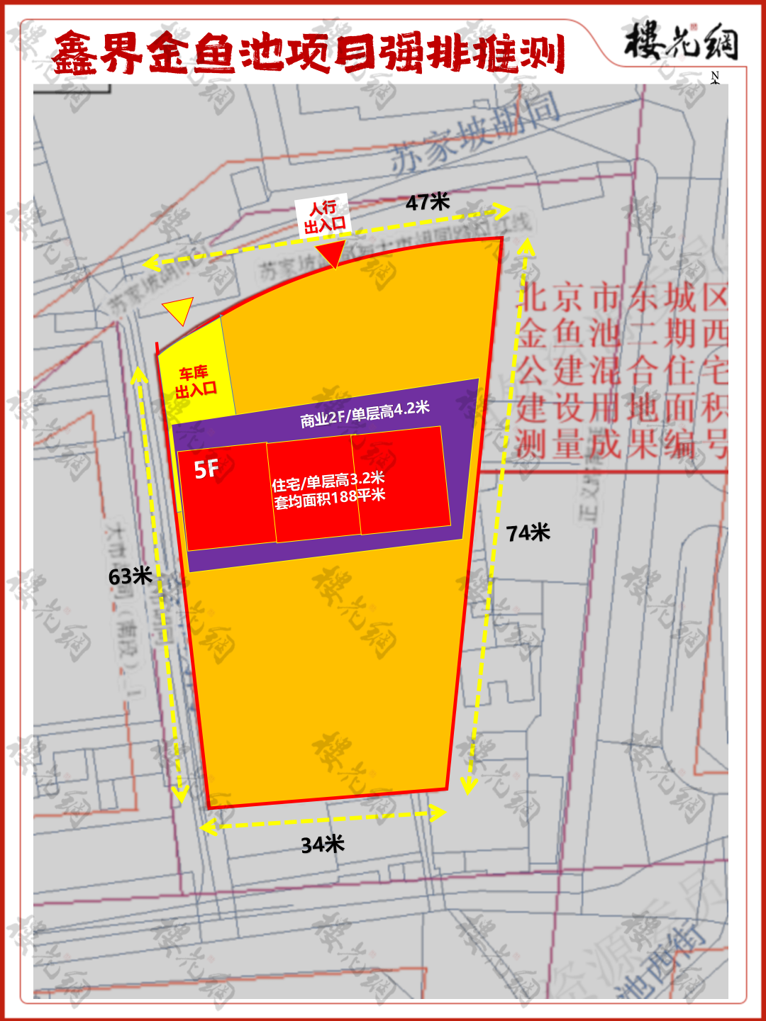 它地块的具体尺寸为:西面长63米,北面长47米,东面74米、南面34米,建筑限高18米。