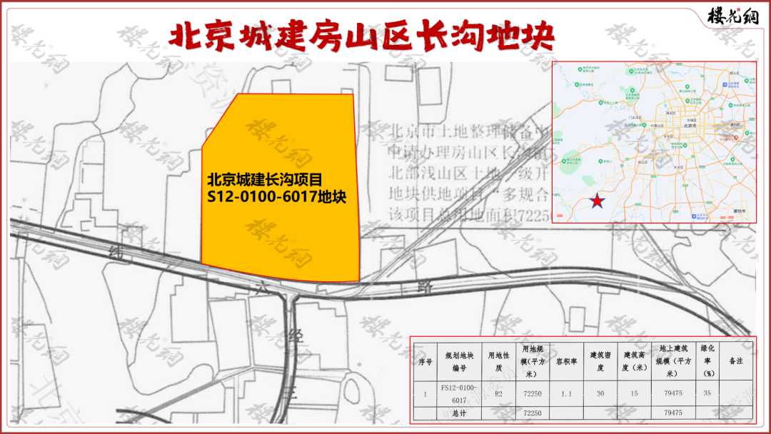 1、房山区长沟S12-0100-6017地块。2021年10月,北京城建以9.83亿底价拿下。