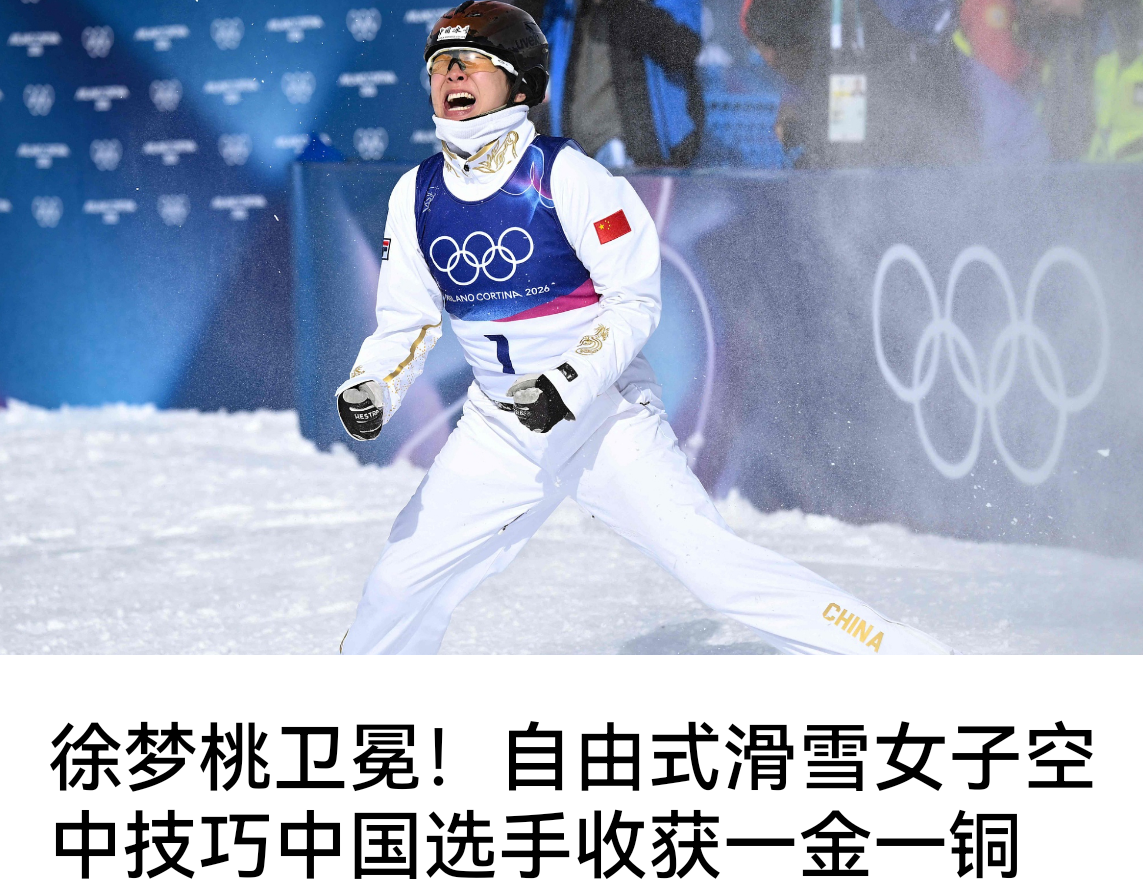农历丙午年正月初二,米兰-科尔蒂纳冬奥会冰雪赛场再传振奋人心的新春捷报!北京时间2月18日,自由式滑雪女子空中技巧决赛落下帷幕。五战奥运的中国功勋老将徐梦桃,凭借决胜轮112.90分的无懈一跳成功卫冕,拿下中国代表团本届冬奥会的第2枚金牌;小将邵琪稳扎稳打,以101.90分斩获铜牌。两位中国姑娘携手站上领奖台,为万家团圆的新春佳节,再添一抹滚烫耀眼的中国红。