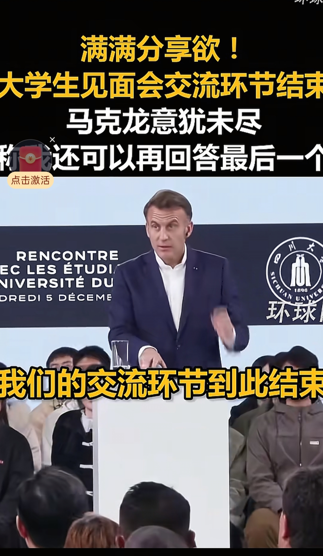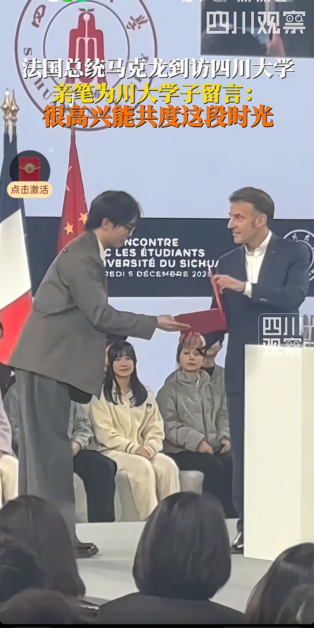 今日,法国总统马克龙走进四川大学校园,这绝非一次简单的礼仪性访问。在百年变局的宏大背景下,此行如一颗投入时代湖面的石子,激荡起的涟漪,清晰映照出跨越大陆的文明对话、面向青年的未来投资与独立自主的战略共鸣,其意蕴深远,远超寻常外交互动。
