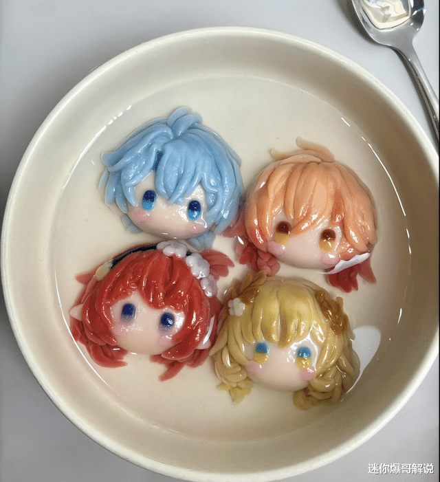看着简单的汤圆,制作起来却不简单,大佬直言这4个汤圆从准备食材到做成功花费了3个小时,角色的头发、头饰、神态都要单独制作,难度确实不小。