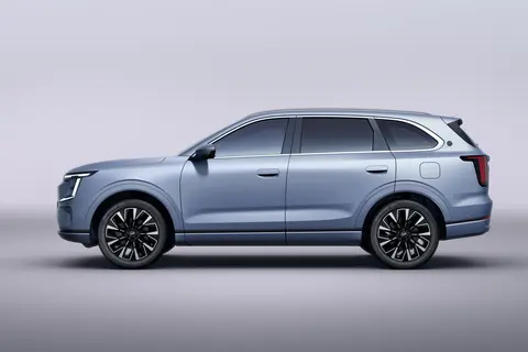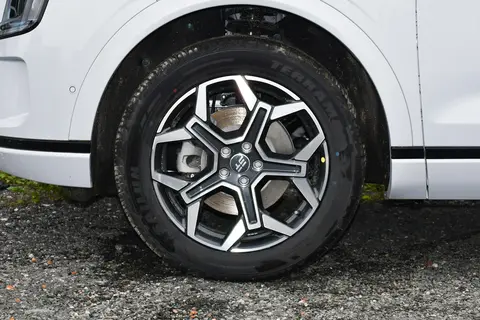 车身侧面,利落的腰线从车头一直延伸到车尾,让整车看起来更动感,不会显得臃肿。银色行李架和镀铬窗框提升了精致感,平时想装个车顶箱、自行车架,行李架也能派上用场,实用性拉满。半隐藏式门把手也很加分,按一下就能弹开,又好看又实用,还能降低风阻,让车更省油。轮毂有 19 寸和 20 寸两种选择,19 寸日常用完全够,20 寸看着更大气,不管选哪种,都能撑起中型 SUV 的气场,不会显得小气。
