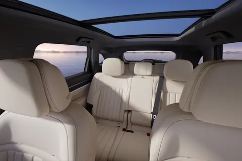 座椅调节按钮设计在门板上方,这个细节太贴心了,不用弯腰在座椅侧面摸半天,操作起来特别方便。全车座椅都是电动调节,主驾驶位支持 12 向调节,不管是 1 米 6 的小个子,还是 1 米 8 的大块头,都能找到舒服的坐姿,开长途也不会腰酸背痛。第二排座椅滑轨有 260 毫米长,能前后移动,要是想让第三排更宽敞,就把第二排往前挪一点;要是第二排乘客想躺会儿放松一下,就往后移,空间灵活度很高,能满足不同的需求。