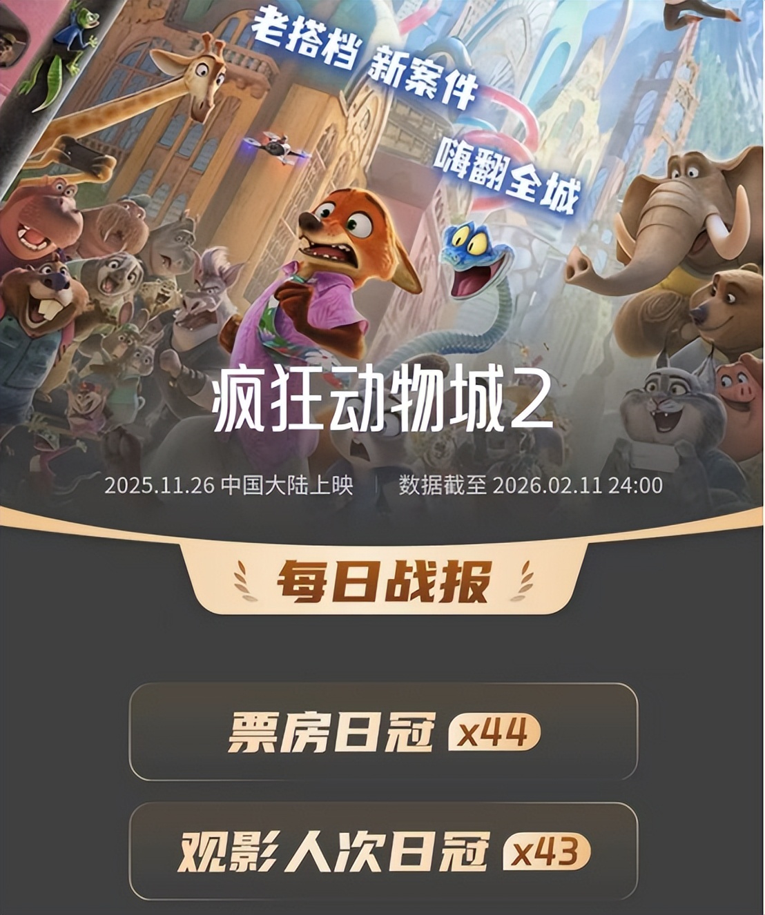 毕竟谁能想到,新上映的电影一个接一个崩盘,倒是上映70多天的《疯狂动物城2》依然稳居日冠,颇有种刹不住车了的架势。
