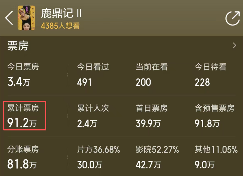 作为星爷IP中比较出名的一部,谁能想到《鹿鼎记2》上映6天,票房甚至都没过百万。