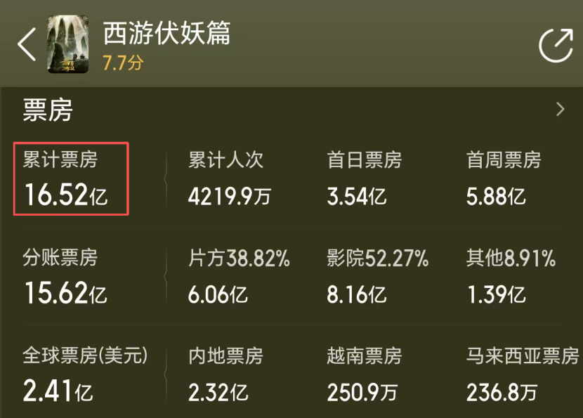 2017年的《西游伏妖篇》,口碑崩盘的同时,累计票房为16亿。