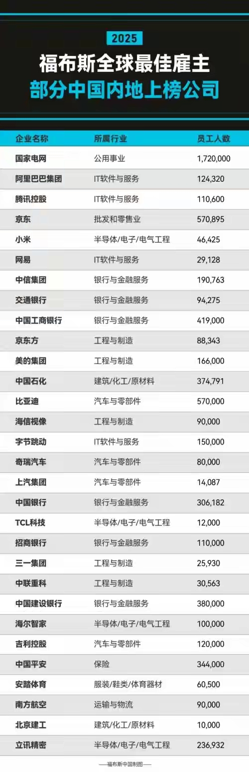 昨天下午整理2025年科技行业人才趋势报告,顺手点开了福布斯刚发布的全球最佳雇主榜单。本想在TOP50里找找熟悉的中国科技公司名字,可从第一页翻到最后一页,屏幕上全是微软、谷歌、苹果这些海外巨头的身影,连半个中国企业的标识都没看到。我特意把榜单打印出来逐行划重点,确认无误后,心里的落差感越来越明显——这已经不是第一次中国企业在顶尖雇主榜单上集体缺席了。