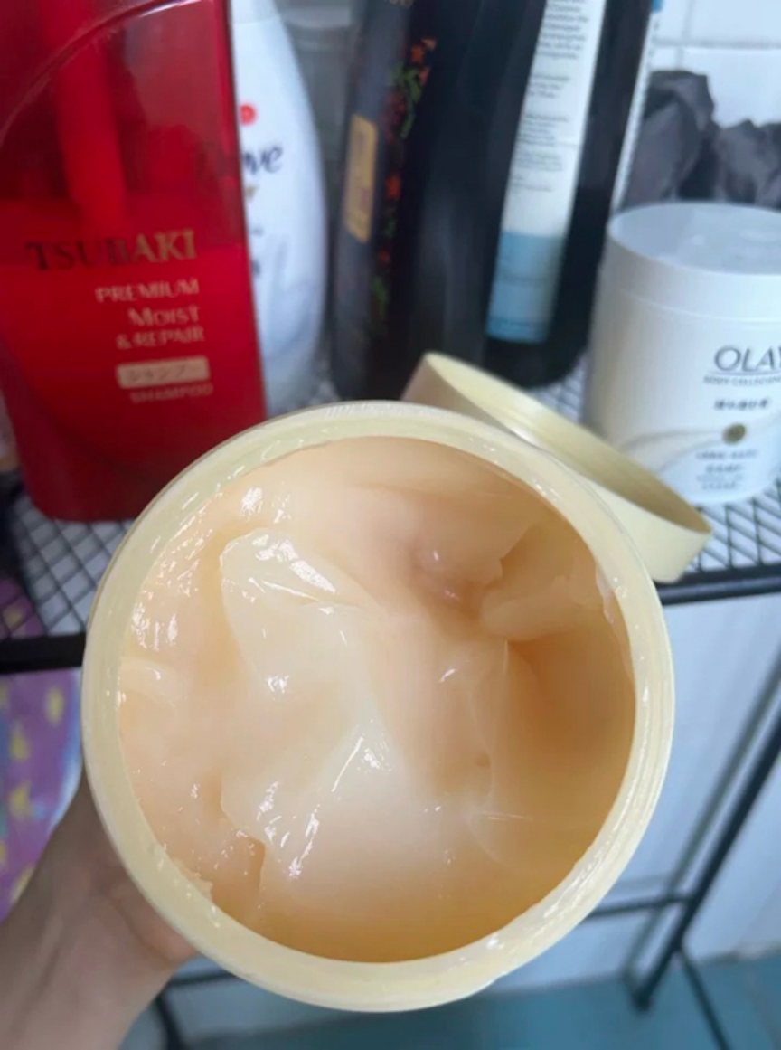 吸收很好,不假滑,乳霜质地的膏体润而不腻,抹在经过烫染的受损发丝上能快速吸收,质地不粘腻,吸收后不会有浮在表面的膏体残留。清洗的时候特别易冲洗,不用反复揉搓头发,吹干后无厚重油膜感,头发没有油腻的贴附感。用着超方便,一点都不麻烦,免蒸不用加热,不需要用发帽包裹,不需要像其他发膜要等很久,随手涂完冲掉就可以,头发清爽无负担,发根全程都能轻盈不扁塌,出差带着用也很合适。
