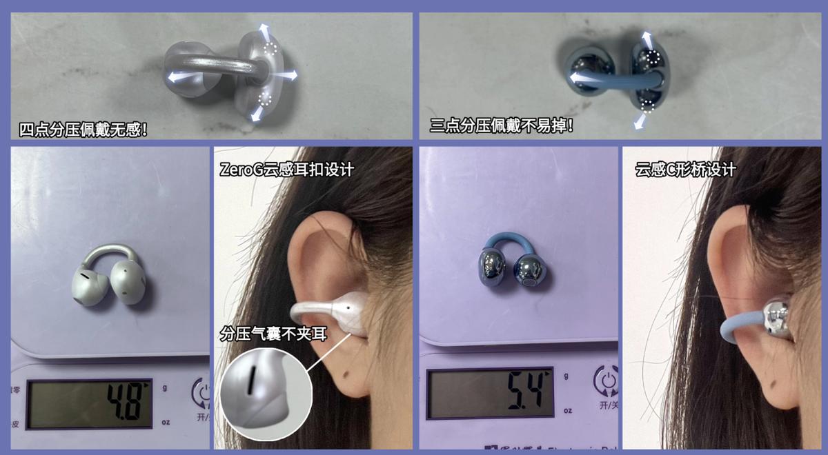 二、佩戴舒适度对比对于耳夹式耳机来说,佩戴体验是最核心的考量点。夹力、重量分布、材质以及是否会产生局部压迫,都会直接影响是否能长时间佩戴。下面我对这几个要点进行实测: