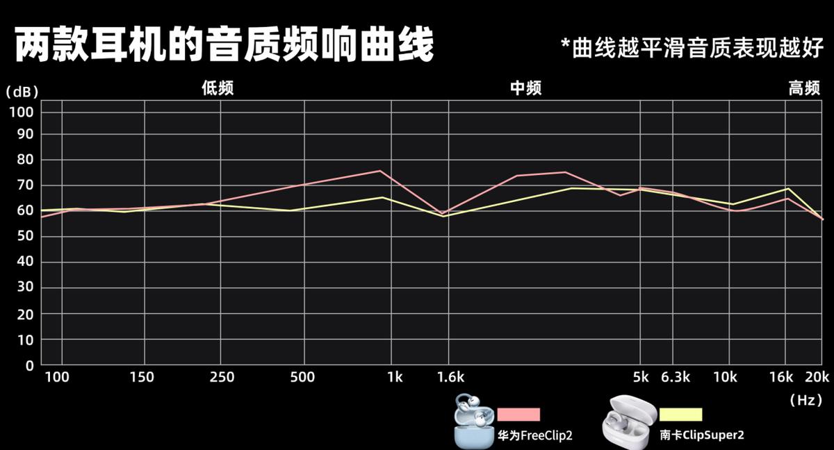 从曲线图上可以看出南卡ClipSuper2因为搭载了南卡全新升级的SuperSound OS 3.0开放式声学系统,以量子声频驱动2.0为核心,并融合多维度算法调校。硬件方面采用NanoBass TiCeram-X双核声学引擎,其中NanoBass动圈负责低频驱动力,TiCeram-X钛金陶瓷复合振膜则保证高频的解析和纯净度。