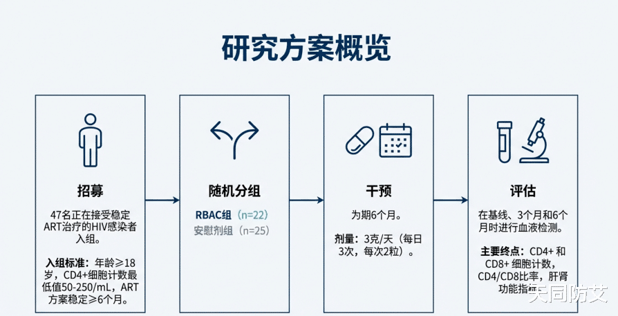 针对 HIV 感染者的免疫调节与脏器保护,一项专门聚焦 RBAC 的随机、双盲、安慰剂对照试验(高证据级别设计)给出了重要结论,其结果值得关注: