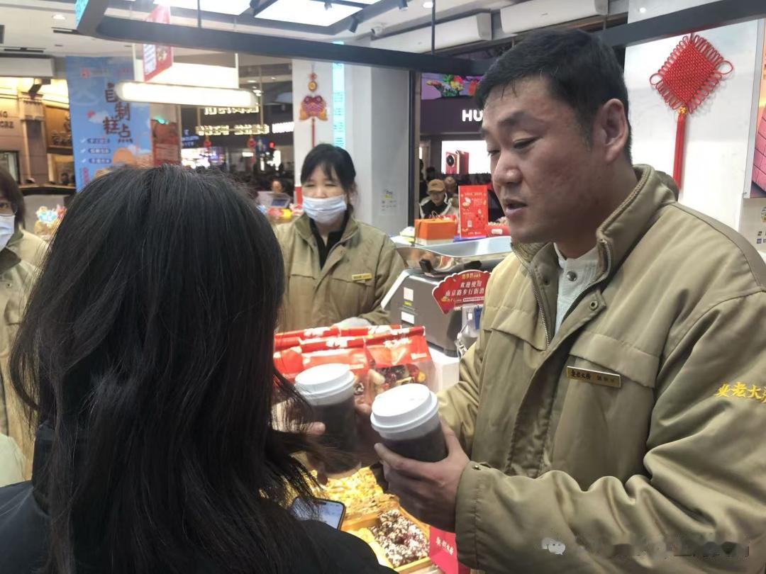 值班长袁喆介绍,派粥的活动是去年12月31日第一次举办的,收获了大家的好评,考虑到今晚天气特别冷,所以今年也是早早就将腊八粥的原材料备齐,师傅们下午就会在车间里熬粥,希望晚上能够让进店的顾客都收获一份新年的暖意和心意。