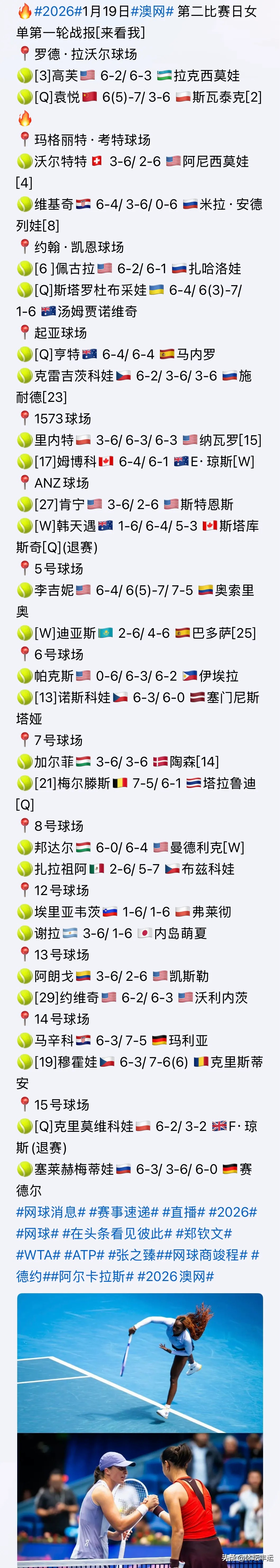 8:00,印尼曾丽美6-2、7-6战胜22号种子加拿大费尔南德斯;❎