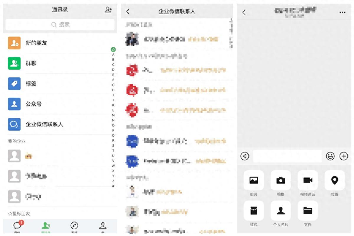 实测发现,鸿蒙版微信与企业微信的互通体验已十分完善。通讯录新增了“企业微信联系人”入口,支持跨平台添加好友,同时语音视频通话、发文件、发送地理位置、推名片乃至发红包等功能,均可流畅操作,确保了跨平台办公协作的连续性。