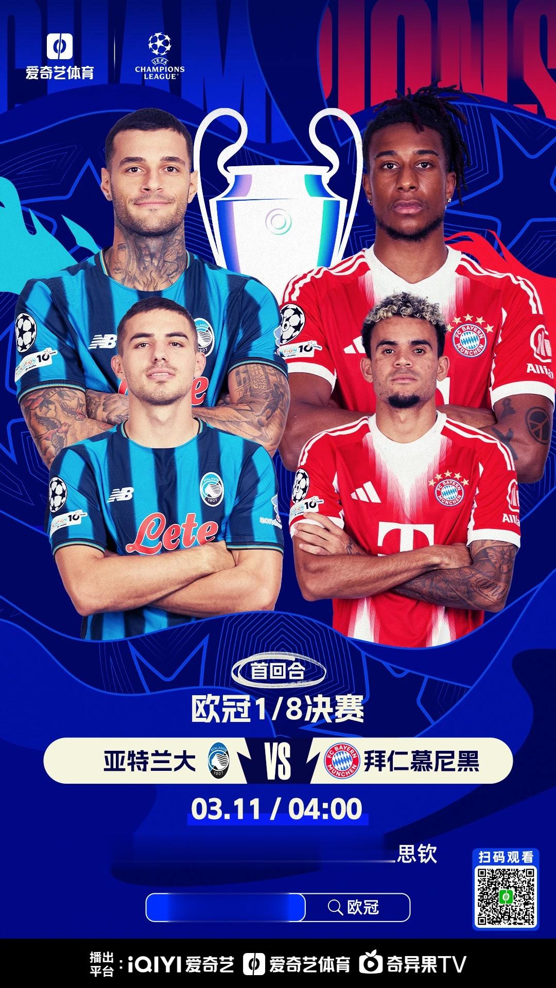 在2026年3月11日凌晨1:45和凌晨4点两个时间段分别进行欧冠2025/2026赛季欧冠1/8决赛首回合赛前预告。在明天凌晨将进行4场比赛:加拉塔萨雷主场迎战英超利物浦,纽卡斯尔将在圣詹姆斯公园球场迎战巴塞罗那,亚特兰大将在意大利贝加莫盖维斯体育场迎战拜仁慕尼黑,西甲第3名马德里竞技将在坐镇万达大都会球场迎战英超联赛排名第16名热刺挑战,欧冠淘汰赛转播平台:爱奇艺体育,需要付费观看,收看单场比赛需要支付12元。