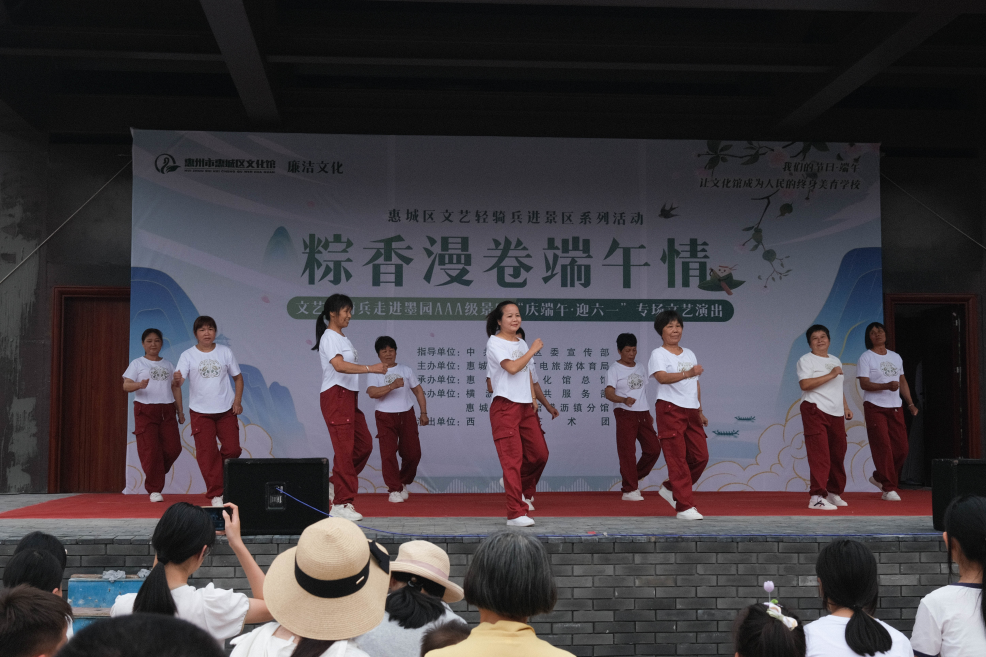 惠州市惠城区"文艺轻骑兵进景区"系列活动走进墨园AAA级景区,举办"粽香端午情·童心迎六一"专场演出。活动由由中共惠城区委宣传部指导,惠城区文化广电旅游体育局主办,惠城区文化馆总馆承办,横沥镇公共服务部、惠城区文化馆横沥镇分馆协办。通过文旅融合创新形式,为群众送上文化大餐。