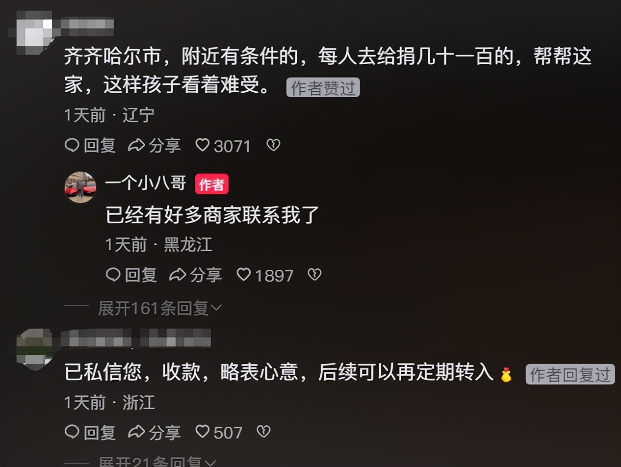 在办理完转院后,男子越来越难受,便将女孩的故事发到网上,这位懂事的女孩瞬间感动了不少网友,不少网友纷纷在评论区中联系男子捐款,有的还带着生活用品去医院看望,传达自己的心意,给女孩应得的回报。