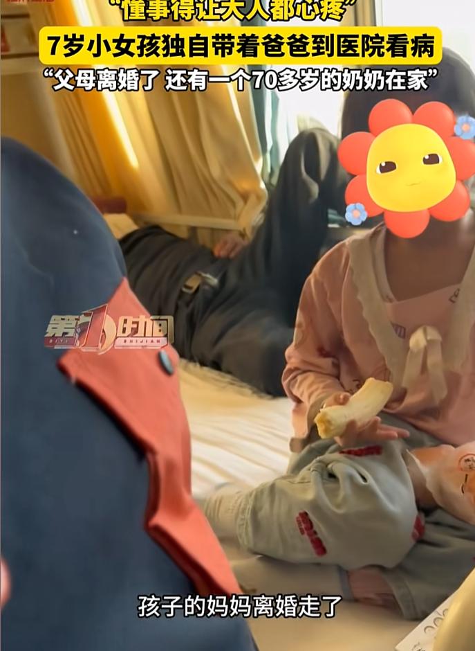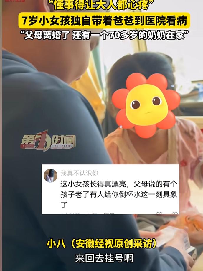而这一幕则更让男子揪心,心中多希望这个孩子能不这么懂事,这份懂事对这名七岁的女孩来说压力太大了。