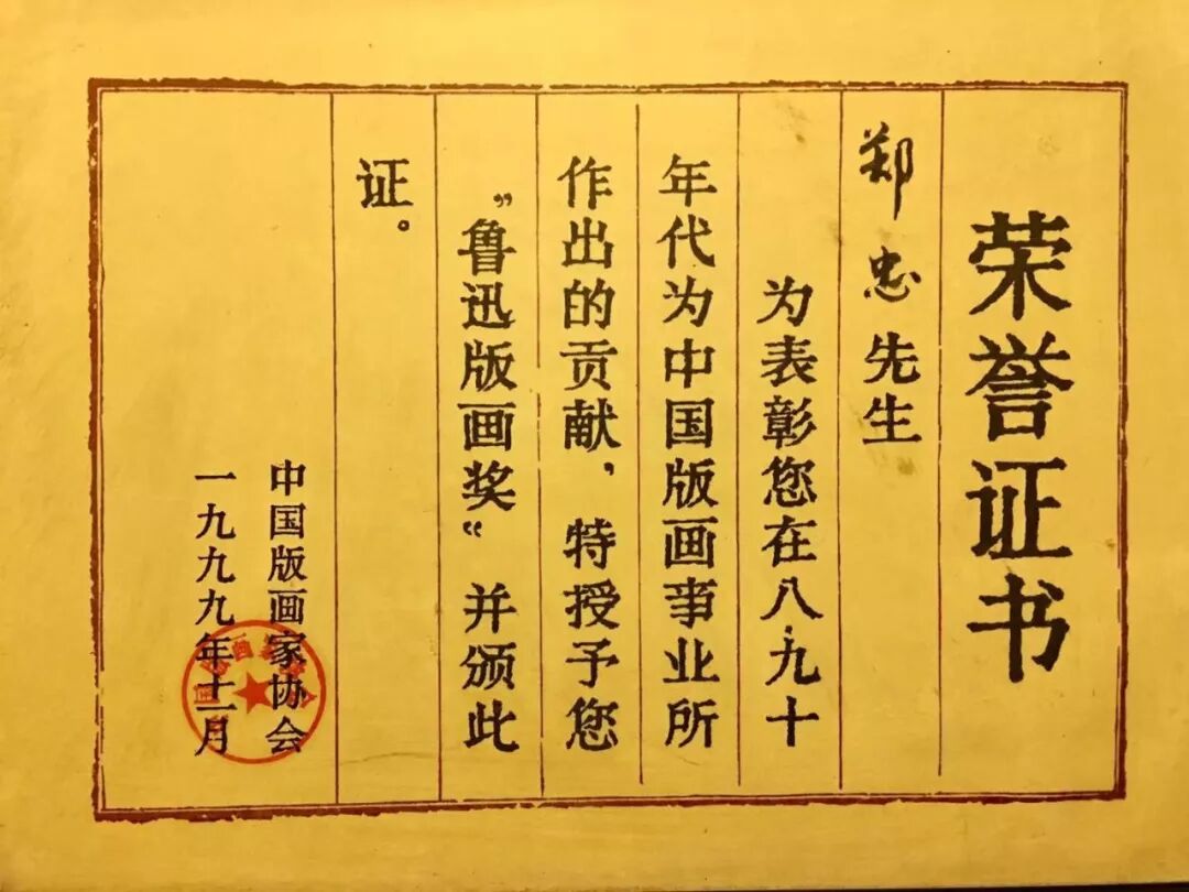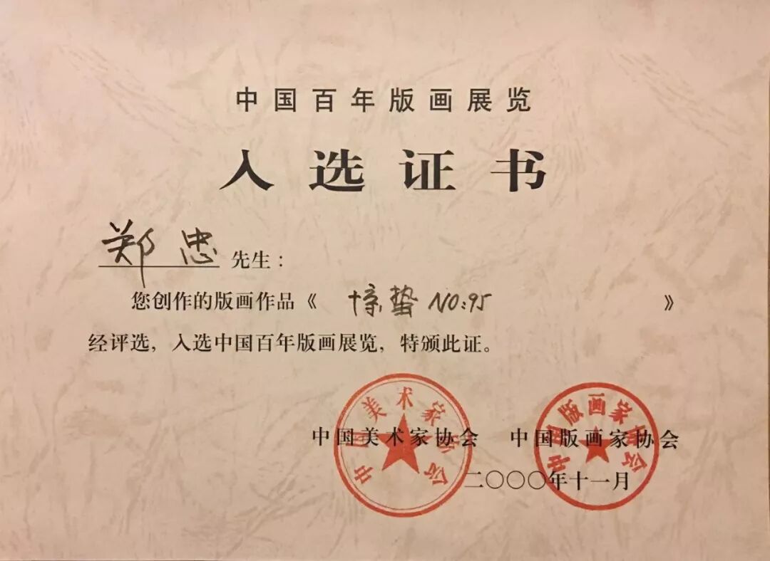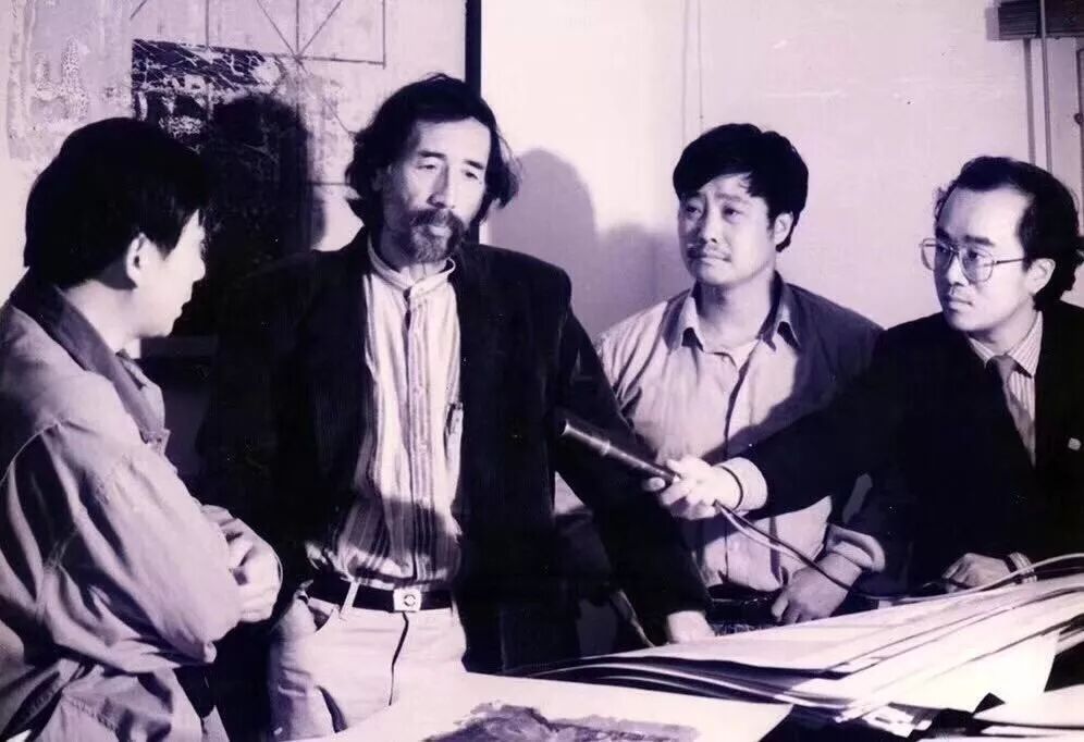 1996年10中央美院版画系主任广军教授、副主任吴长江教授、中国版协副主席谭权书教授从广州飞抵南通郑忠工作室参观指导,提出郑忠个展到中国美术馆的动议。这是吴长江教授、广军教授在郑忠画室接受南通电视台的采访
