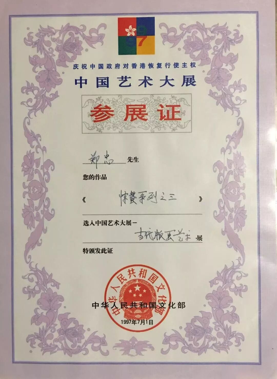 1997年11月11日郑忠个展在北京中国美术馆举行:
