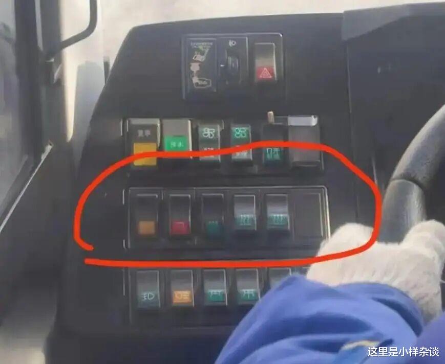 红色圈的区域,为控制车内暖风系统的按键,左侧三个按键分别代表前风挡除霜开关(黄色),电独立水暖开关(红色),驾驶员脚下暖风机开关(绿色),而右边的两个绿色开关,是乘客区域暖风机的开关。燃气车发动机余热不足,水温偏低,开启燃气水暖浪费燃料,不开燃气水暖,水温上不去,“选择性开启暖风”可以让驾驶员自己暖和了,又不会导致水温下降过快。纯电动公交车:冬季续航本来就差,部分公司对用电还要进行考核,为了节约电能,“选择性开启暖风”这样做也成了“最完美”的解决方式。最近这几天沈阳气温异常寒冷,有些人真的是在家冷,在外边等公交冷,坐上了公交车还很冷,寒气是会传递的,这种身体的冷会一点点让心也凉凉。