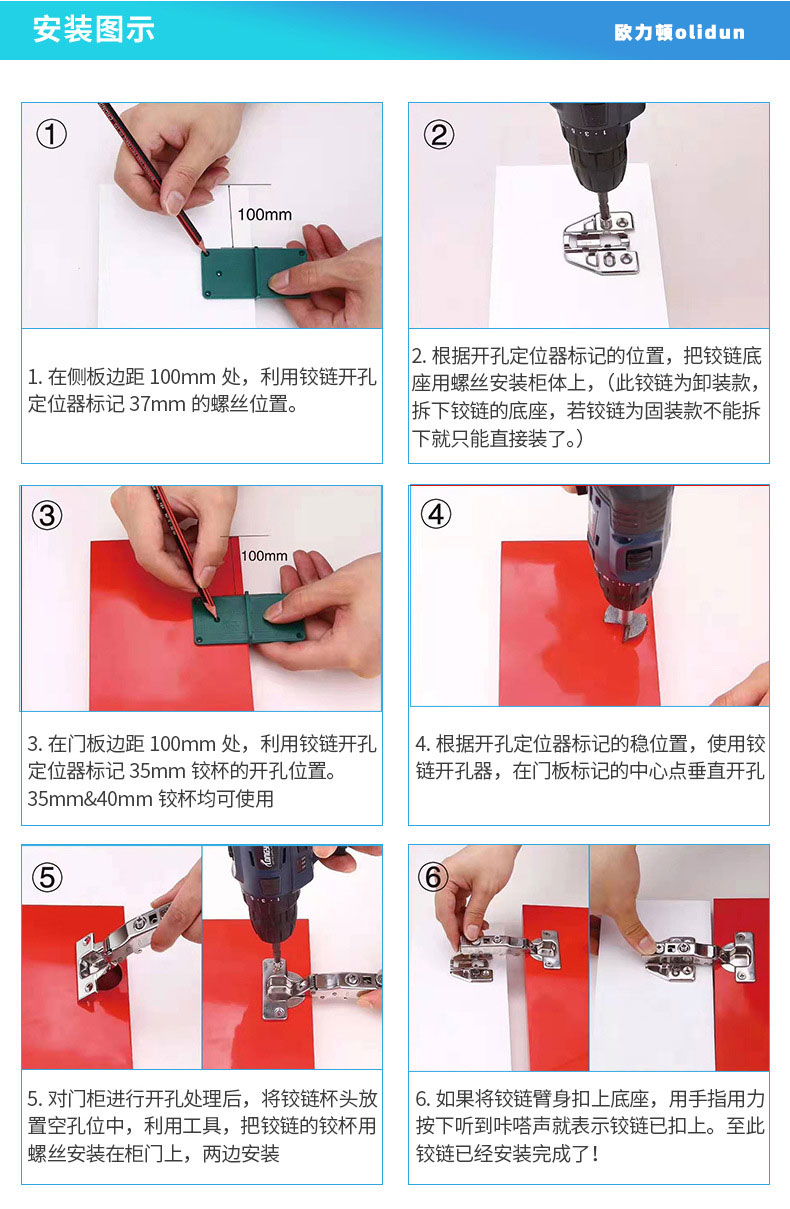 以上就是关于二段力柜门铰链安装步骤的介绍,二段力柜门铰链在装修中有着不可替代的作用,但是大家也要注意它的使用方法,如果在使用时没有按照正确的方法进行操作,那么就会影响它的性能。希望大家在购买二段力柜门铰链时能够注意这些问题,这样才能够保证它发挥出最好的性能。
