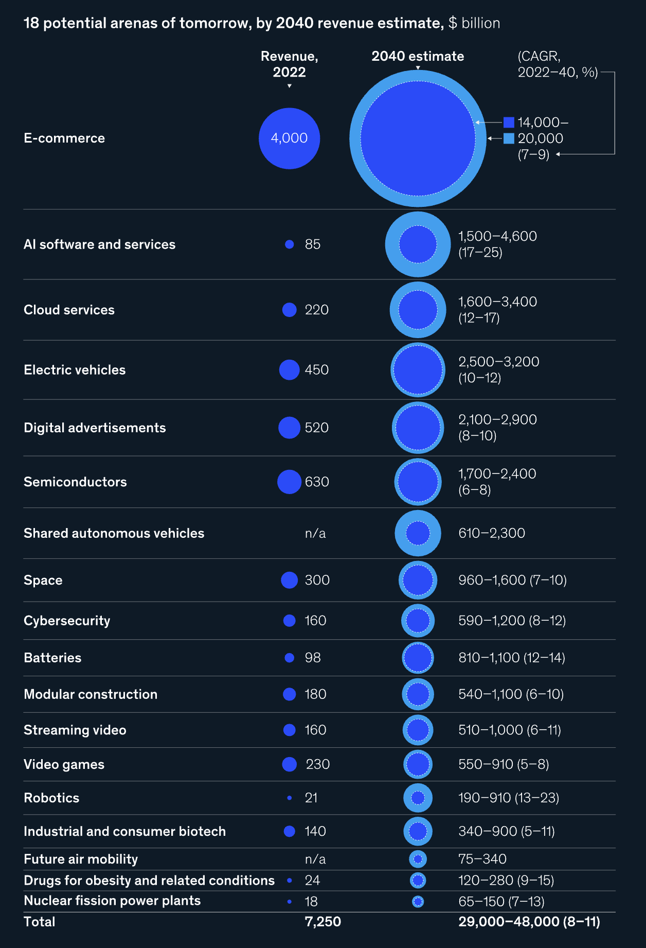 这18个新赛道加起来,预计到2040年,每年能创造 29万亿到48万亿美元 的收入。这是个什么概念?就是能再造好几个现在的美国经济体。机会巨大。