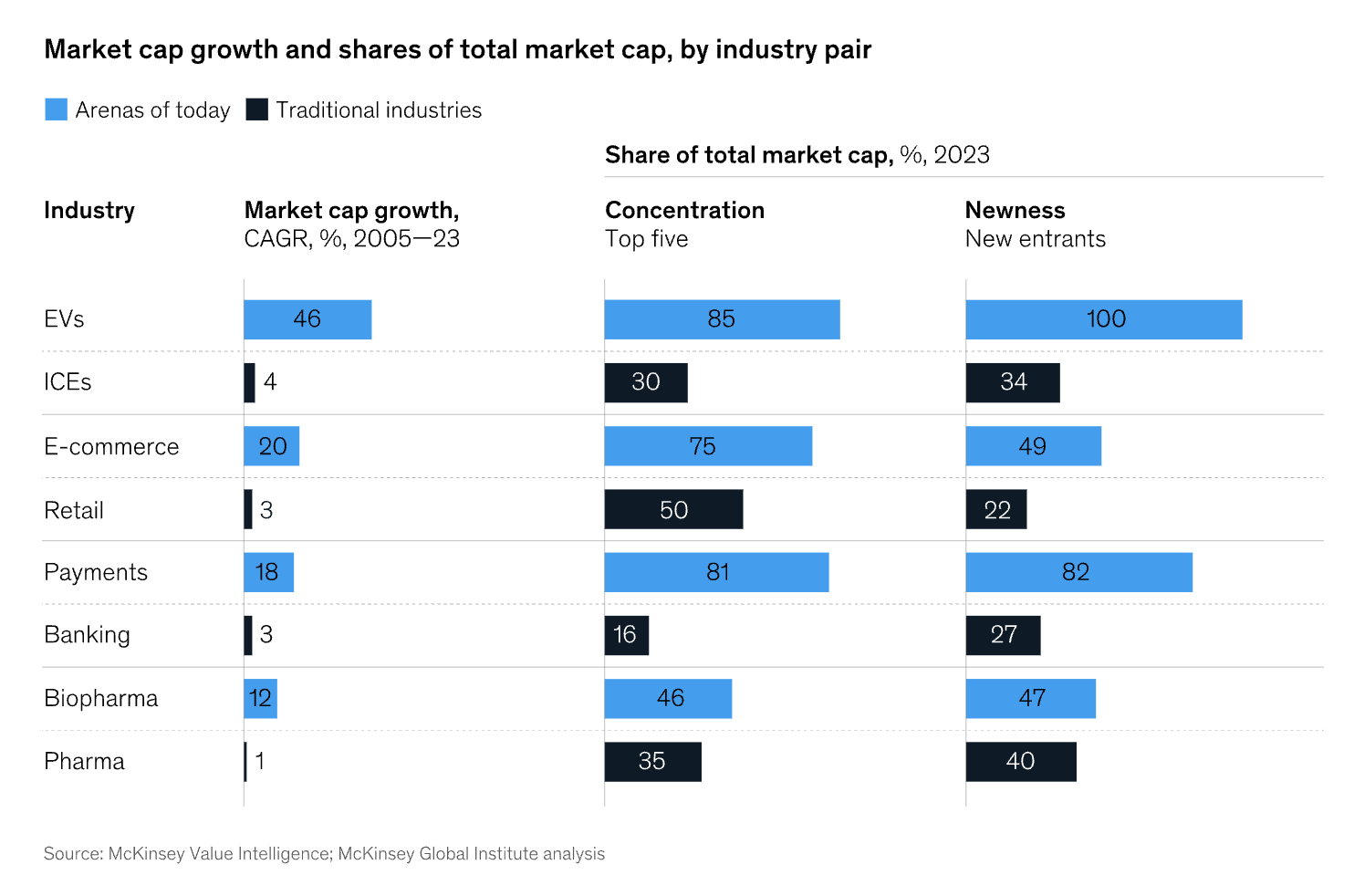 赢家通吃: 每个赛道里,前几名的大公司就占了绝大部分市场。