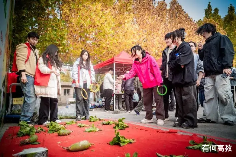 本次活动以“从农场到市场”为完整主线,来自各学院的300余名师生深入田间地头,共同采收并售出蔬菜总量达4000余公斤,随后转运至市场上进行售卖,售卖过程中各学院同学在指定摊位化身“品牌主理人”,主动创新蔬菜营销策略,有些推出“买三送一”等组合优惠活动;有些组织小分队主动走出集市场地,向来往师生热情推介并设置“趣味套圈”互动环节,吸引大量师生参与,为活动增添了轻松愉快的氛围,进一步提升了活动的互动性与吸引力。