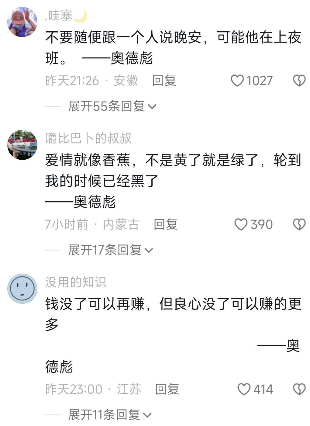 奥德彪:人在家中坐,名言天上来。你记住,别管记住什么你只管记住