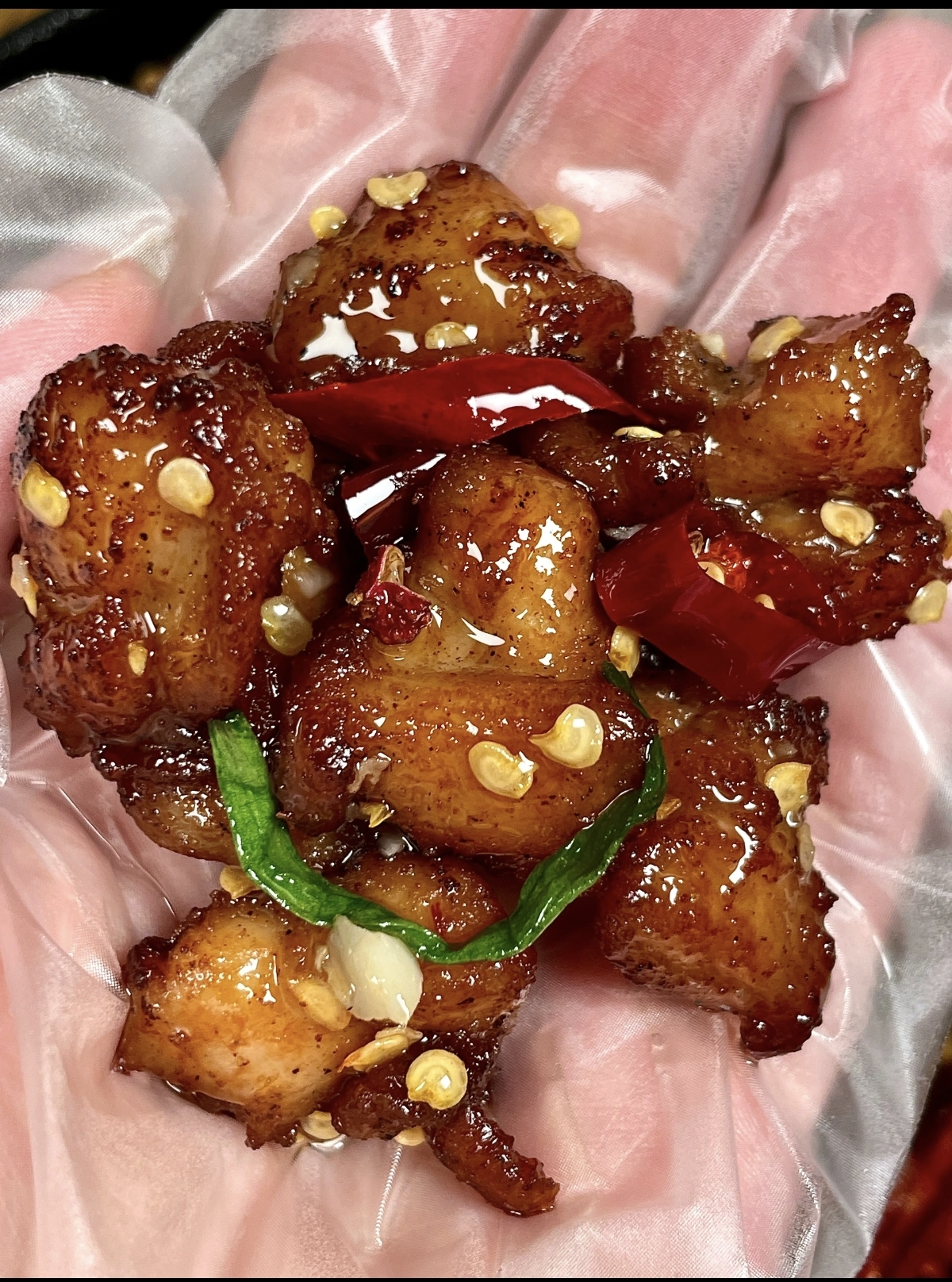 装盘!看,红亮的辣椒,金黄的鸡丁,点缀着白芝麻,光看着就让人食欲大开。