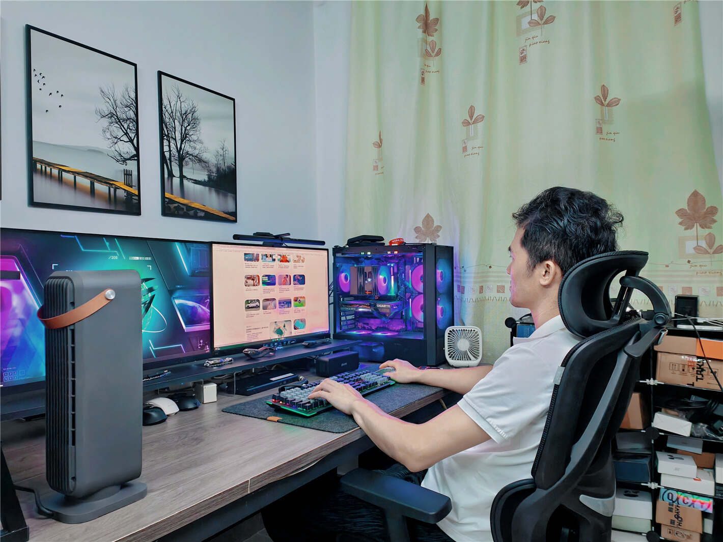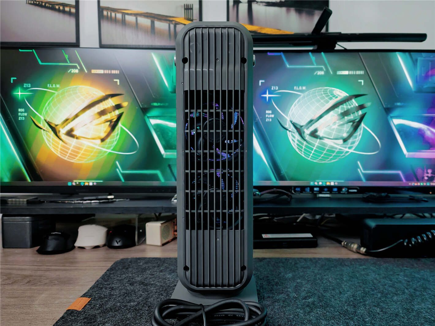 主机的外观简约大气,深灰色的磨砂质感搭配流线型底座,设计没有多余的装饰,十分现代。放在然后地方都不会显得突兀,反而增添了一丝艺术氛围。而且,它的尺寸恰到好处,无需特别腾出空间,尤其是放在书房的桌面或者椅子旁都非常合适。