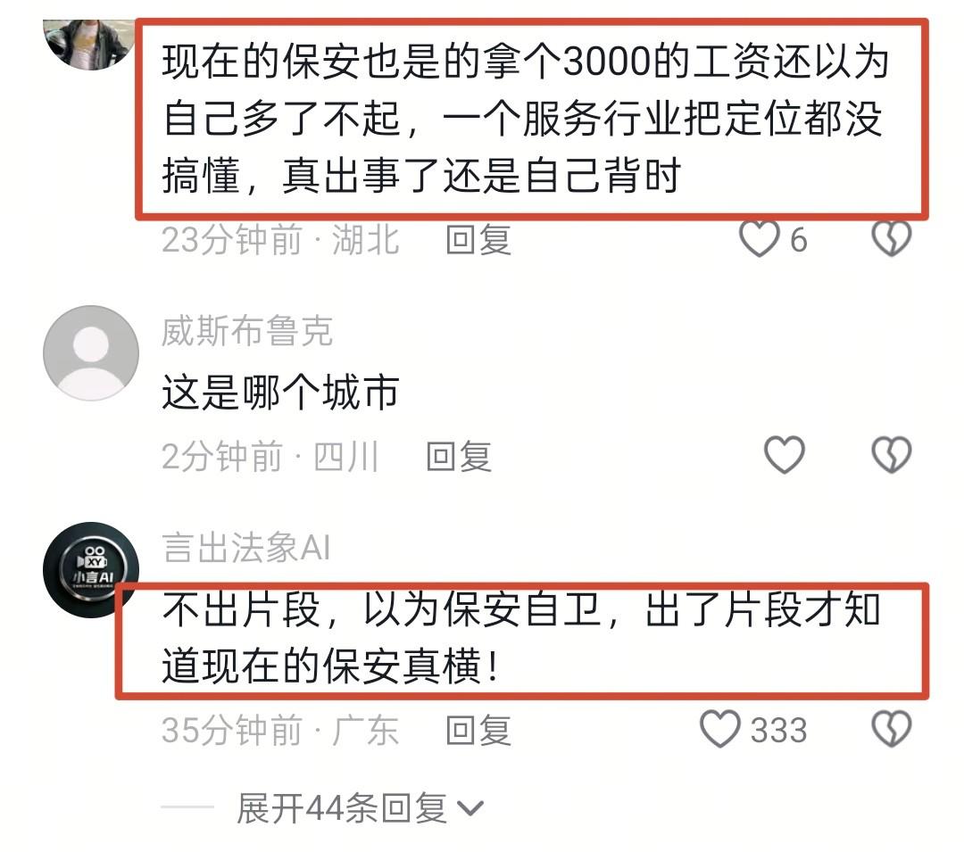 网友的评论一针见血:“服务行业不是特权行业,保安的职责是管理,不是动手伤人。拿3000块工资就觉得自己高人一等,这种心态本身就有问题。”