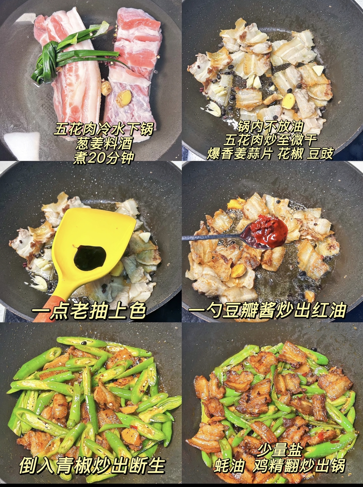 烹饪的过程,是一场对火候与耐心的考验。首先,将切好的五花肉片放入热锅中,中小火慢慢煸炒。看着肥肉部分的油脂一点点渗出,肉片边缘微微卷曲,变得金黄焦脆,那股诱人的肉香便已弥漫开来。这时,将多余的油倒出,只留少许底油,加入姜蒜末和豆豉爆香,再调入一勺郫县豆瓣酱,小火炒出红油,让五花肉裹满浓郁的酱香。
