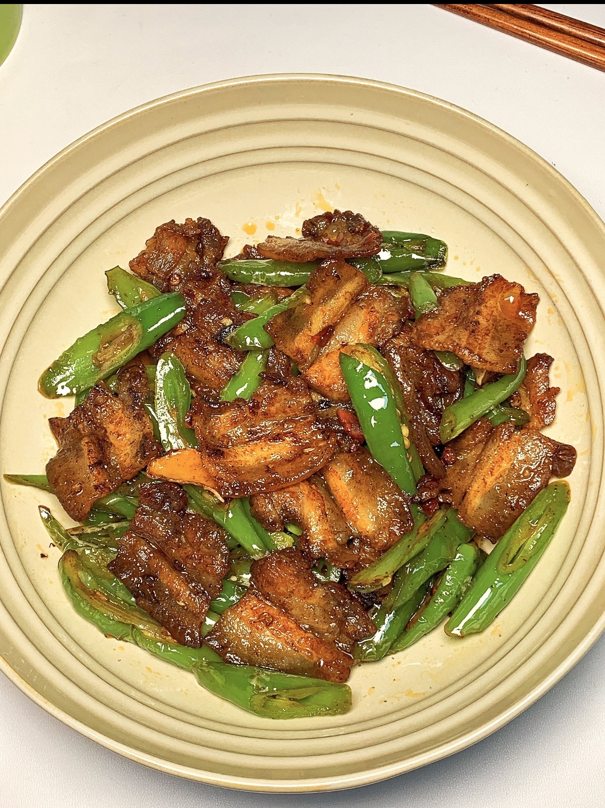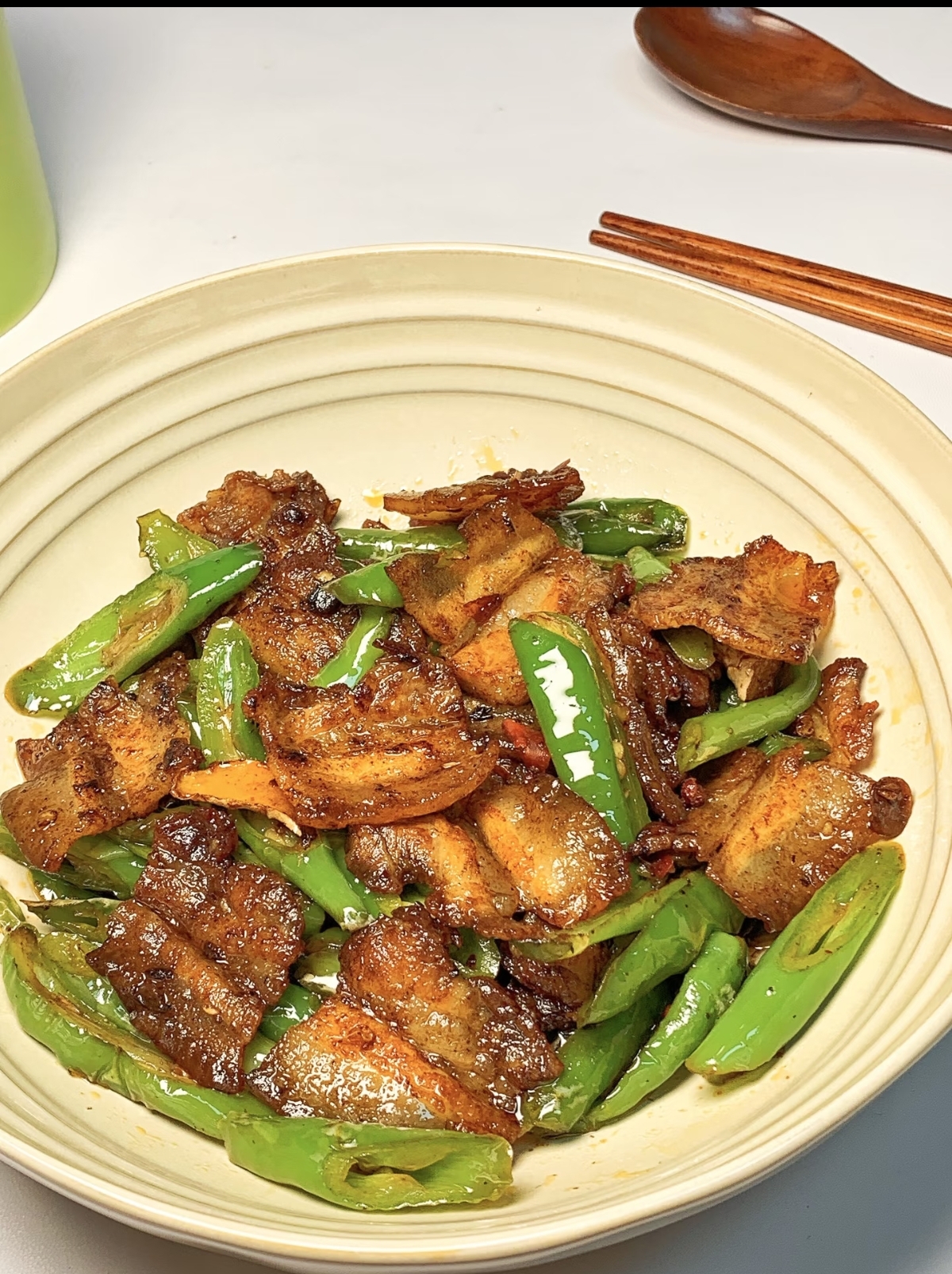 当一盘色泽红亮、热气腾腾的青椒回锅肉端上桌,香气扑鼻而来。夹起一片五花肉,肥而不腻,入口即化,瘦肉部分则有嚼劲,酱香浓郁。再夹一块青椒,脆嫩爽口,带着一丝微辣,与五花肉的油脂完美中和,让人回味无穷。这道菜,简单却不平凡,它用最家常的食材,诠释了最真实的美味。正如开头所说,一定要多准备米饭,因为那浓郁的酱汁拌上米饭,每一口都是满足,让人欲罢不能。