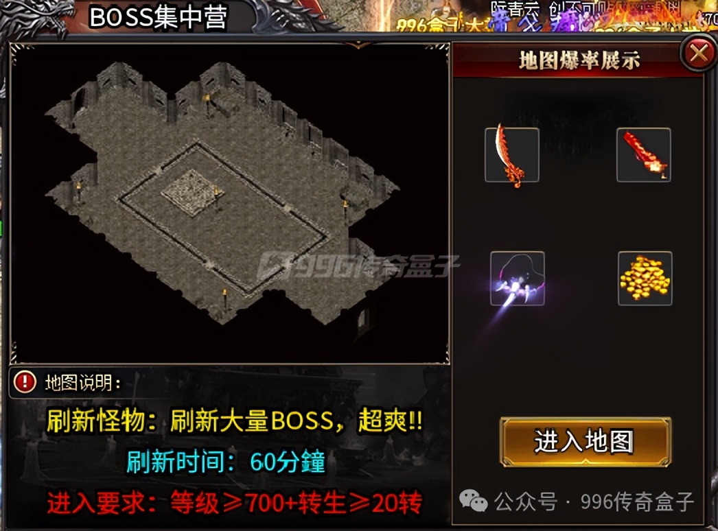 上线领取盒子礼包就能下新手图刷怪了,会员赞助打怪就送,福利超多!按等级进入一大陆的地图,有基础装备后就能进入BOSS集中营,爆率高,BOSS多,可以快速成长发育!打到的元宝在土城用于提升各种特殊,增加自己的战力,前期会稍微慢一点,发育起来后效率就会提上来,越打越快!