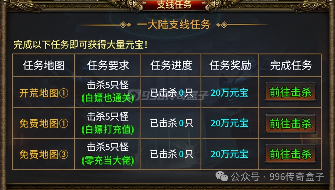 只开放五个大陆,但绝对长久耐玩,每个大陆都呈现不同的玩法和探索!跟随任务引导走,就能在一大陆获得六大土城称号,然后前往执迷古镇完成剧情获得八卦混沌盘,这是进入二大陆必备。执迷古镇不是二大陆,是一大陆的剧情部分,优先制作鸡毙你、玛法之刃、伪攻速、指环王、和古镇的信物,这些会让你拥有极强的基础,发育更快!