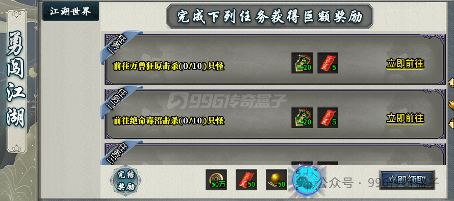 超大世界观,少林派、武当派、峨眉派、昆仑派等九大门派,五大神教以及武林第一帮,大陆内容丰富,简单不烧脑!门派神装、门派至宝、本命神器、师门任务、丹药功法、武林神技等超多玩法,副本分为四圣试武,真武问道,金顶问剑,寒穹试炼、华山论剑等等,每完成一个副本就能领取对应的奖励!