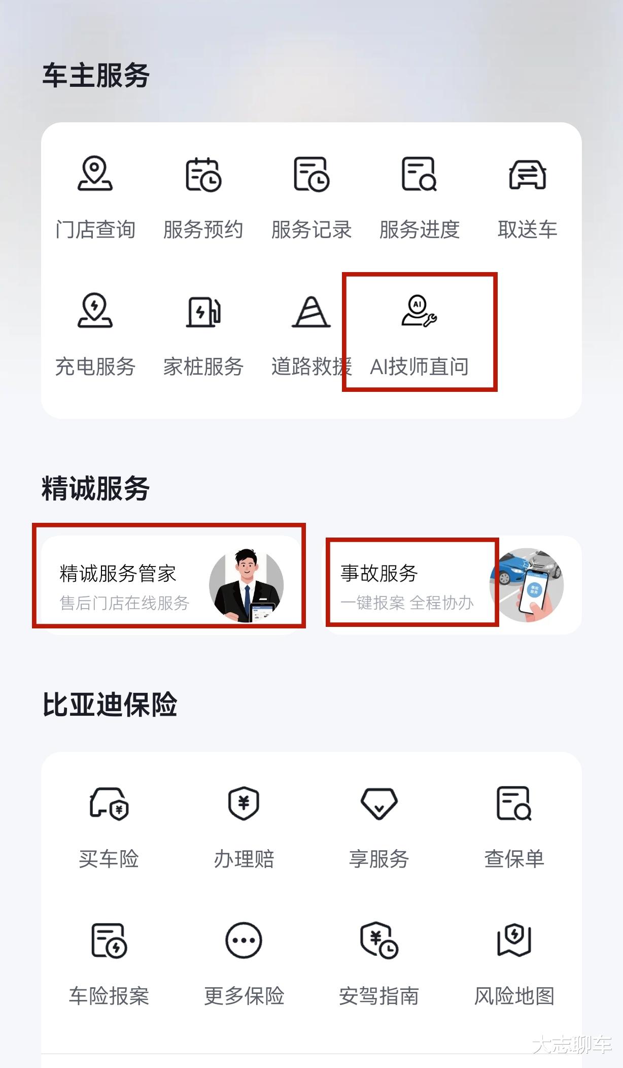 第四个:管家式服务,在比亚迪手机APP上面,你可以看到一个AI技师和精诚管家,你要是出了什么问题,像一些售后和故障问题,你随时可以直接找技师或者附近4S店的人来帮你解决问题,最关键的,他们的响应速度也很快,当然,唯一一个缺点是要动你保险时,可能费用会有点小贵,如果是小问题,还是自己找熟悉的修理店比较合适。