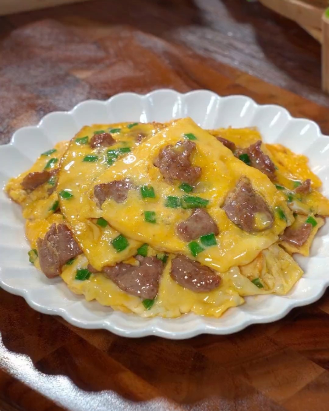 第一道美食,牛肉滑蛋制作的方法:先把切好的牛肉腌制一下,放入生姜,胡椒粉,生抽,水淀粉,用收抓拌均匀腌制十分钟。接着,空碗中打入鸡蛋并放入食用盐和葱花,少量水淀粉,用勺子搅拌均匀留着备用。然后起锅烧油,五成油温放入腌制好的牛肉,炒至5成熟倒入鸡蛋液,转小火慢煎至两面熟透,然后切成小块即可出锅装盘。这样一道牛肉滑蛋,既美味又营养,拿来给孩子吃是一种不错的选择。